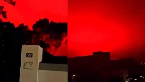 浙江舟山氣象局回應當地現血紅天空,可能遠洋船燈光折射所致
